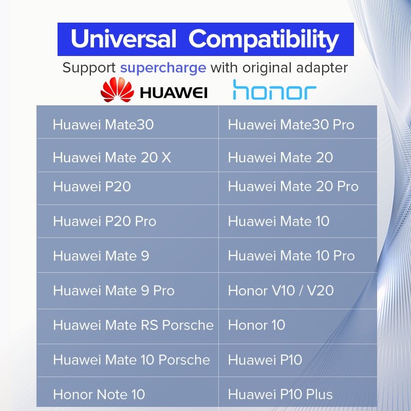 | Function | Supercharge USB Type C Cable for Huawei P10/mate 10/mate 10 pro/9 pro |